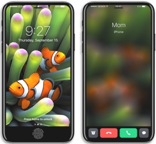 이미지 확대보기9일(현지시간) 모바일폰 리커 @OnLeaks와 IT블러거 @GearIndia가 공개한 아이폰8의 렌더링 이미지를 보면 새로운 아이폰은 갤럭시S8과 같이 베젤(테두리)이 거의 없는 베젤리스폰이 될 것으로 보인다.