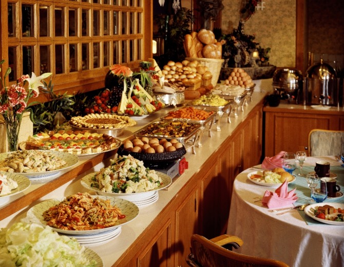 중국 대륙에서도 해물∙불고기∙초밥 등 다양한 요리를 갖춘 뷔페 레스토랑이 존재하고 있으며, 뷔페 형식으로 식사를 즐길 수 있다. 이를 표현할 때 '츠따오바오(吃到飽. Chī dào bǎo)'나 '쯔좐찬(自助餐. zìzhùcān)'을 사용한다.