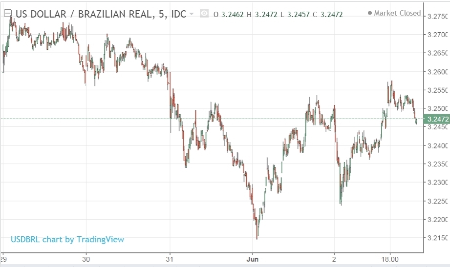 지난 5일 동안의 환율변동표를 보면 헤알화환율이 조금씩 내려가고 있음을 알 수 있다. 테메르 대통령의 녹음파일이 공개되던 지난달 18일의 헤알화환율 폭등의 절반 가량이 회복(하락)됐다.