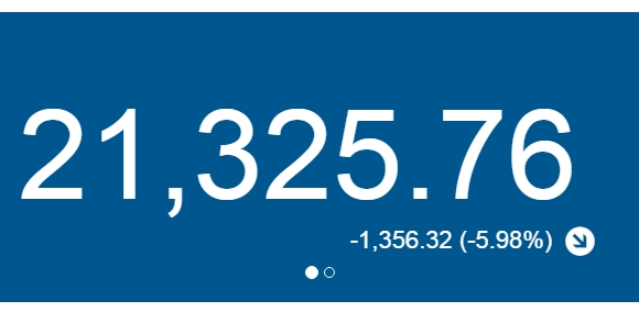 이미지 확대보기6일 일본증시에 따르면 도쿄 증시의 대표적인 지수인 닛케이 225는 낮 12시 58분 현재 2만1323.60을 지나고 있다. 전일 종가대비 1358.48 포인트 비율로는 5.99%떨어진 것이다. 닛케이 225 지수는 장중한 때 2만1316.01가지 떨어지기도 했다.