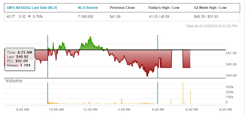 이미지 확대보기21일 뉴욕증권거래소에 따르면 제너럴모터스(General Motors Company) 주가는 이날 주당 40.77달러로 마감했다. 전일 대비 0.32 달러, 비율로는 0.78% 떨어진 것이다.