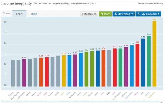 이 같은 조사결과는 OECD 가 회원국 국가들의 지니계수를 비교분석한 데 따른 것이다.