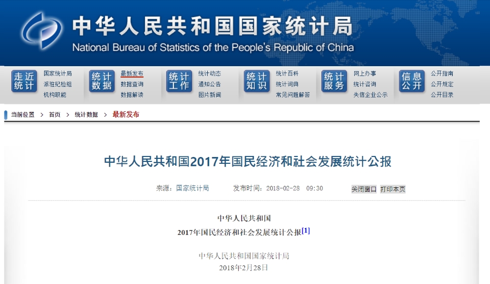 2017年国民经济和社会发展统计公报[1]