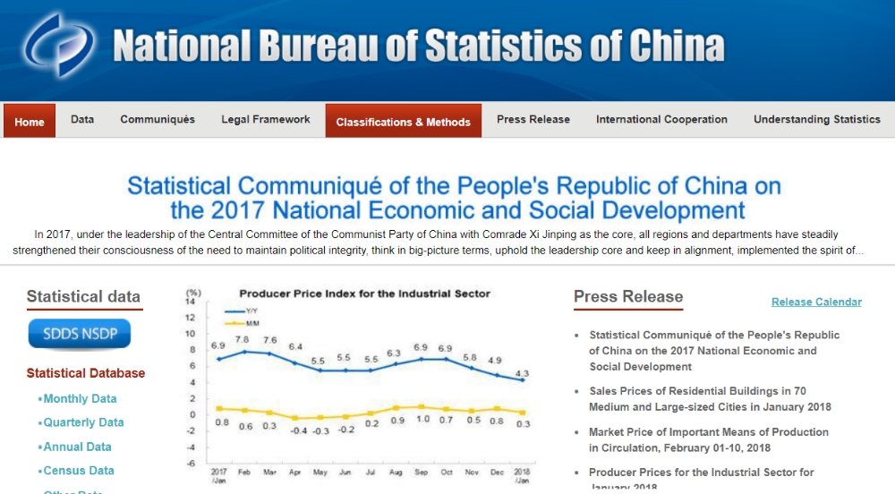 통계국은 2017년 중국 경제의 특징을 6.9%의 경제성장률과 5% 미만의 실업률 그리고 1.6%의 인플레이션율로 요약했다.