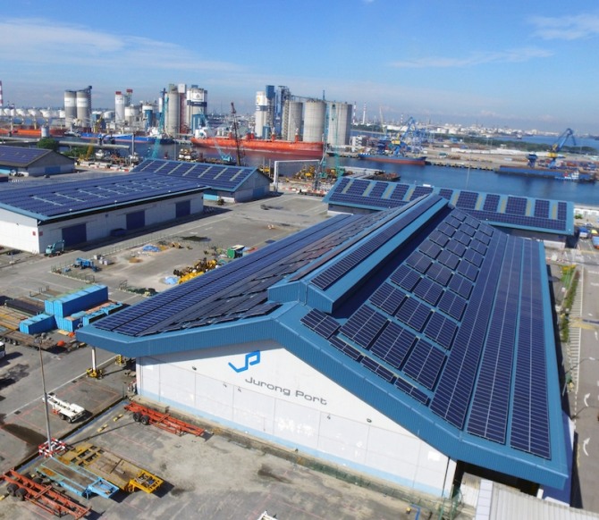 이미지 확대보기MS가 싱가포르 선십그룹과 협력 계약을 체결했다. 사진은 주롱항구에 설치된 9.5메가와트피크(MWp) 규모의 세계 최대 항구기반 태양광 발전소. 자료=선십