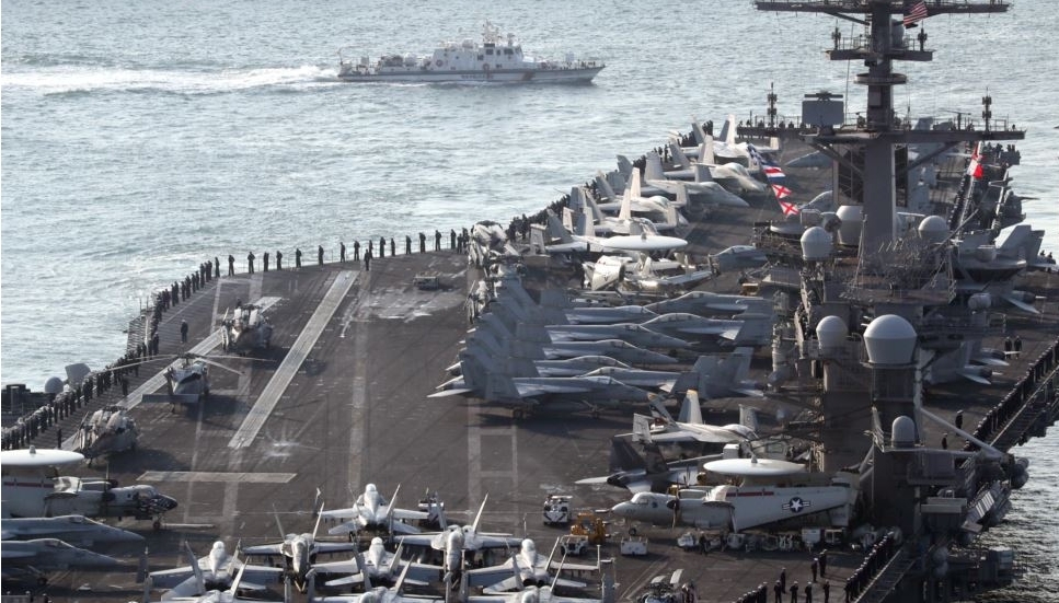 중국은 남중국해에 인공 섬을 건설하고 있다. 그 인공 섬을 기반으로 남중국해를 중국의 군사 기지로 만들어 가고 있다. 미국 칼빈슨 호는 남중국해에서 중국의 패권을 견제하기 위한 것이다.