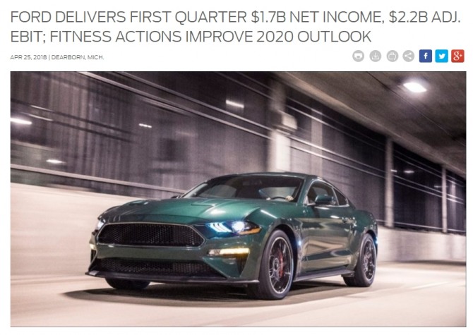 포드 자동차는 올 1분기 중 419억6000만 달러의 매출을 올렸다. 우리 돈으로 약 44조원 에 상당하는 규모이다. 시장의 예상을 훨씬 초과하는 양호한 실적으로 평가되고 있다.