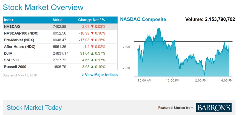 나스닥 지수는 7402.88로 마감했다. 전일대비 2.09포인트 비율로는 0.03%떨어졌다.( NASDAQ 7402.88 -2.09 ▼ 0.03%)