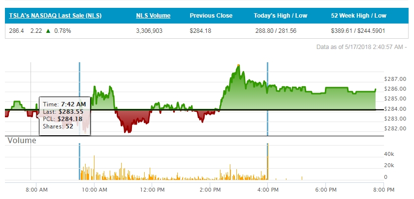 미국증시 테슬라 실시간 주가