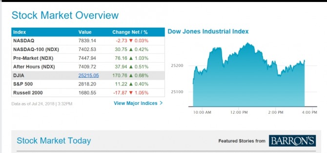 다우지수 DJIA 25215.05 170.76 ▲ 0.68%