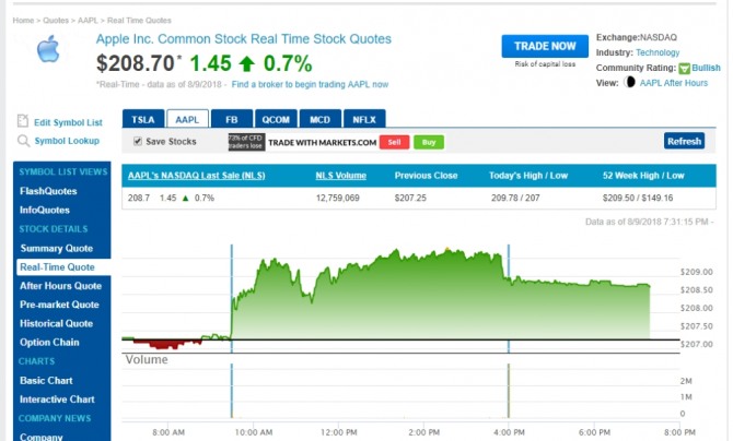 미국 뉴욕증시 관계자들은 이날 애플 주가가 막판에 오른것과 관련하여 삼성전자의 갤럭시노트 9과 갤럭시 워치 그리고 S펜등의 언팩을 주목하고 있다.