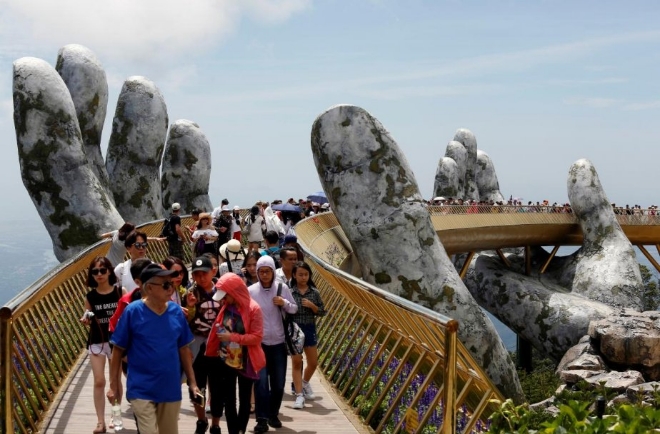 지난 6월 개통된 골든브릿지는 다낭을 찾는 관광객들에게 폭발적인 인기를 끌고 있다.