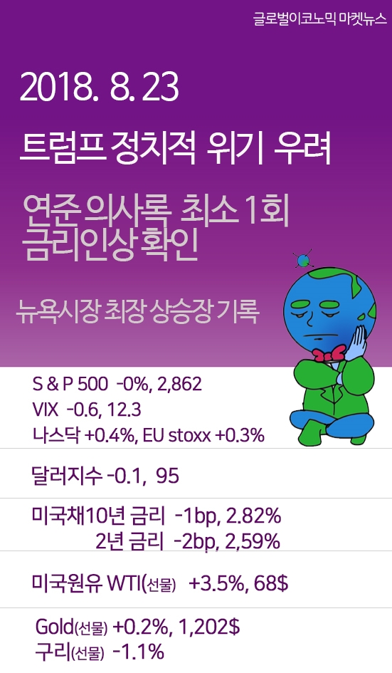 [글로벌 마켓뉴스] 8/23 트럼프 정치적 위기에 시장 우려…연준 최소 1회 금리인상 확실