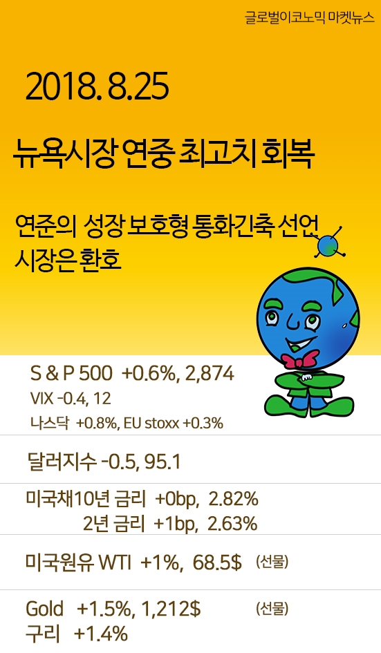 [글로벌 마켓뉴스] 8/25 파월 연준의장 '성장 보호형' 통화긴축 선언…뉴욕시장 연중 최고 회복
