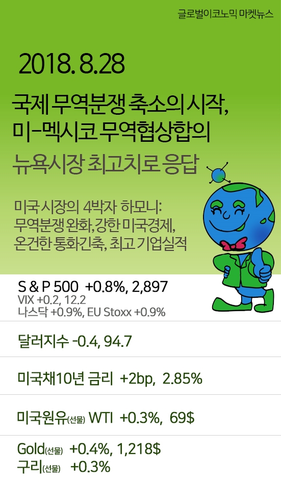 [글로벌 마켓뉴스] 8/28 미-멕시코 국제무역분쟁 축소 첫 신호…뉴욕시장 최고지수로 응답