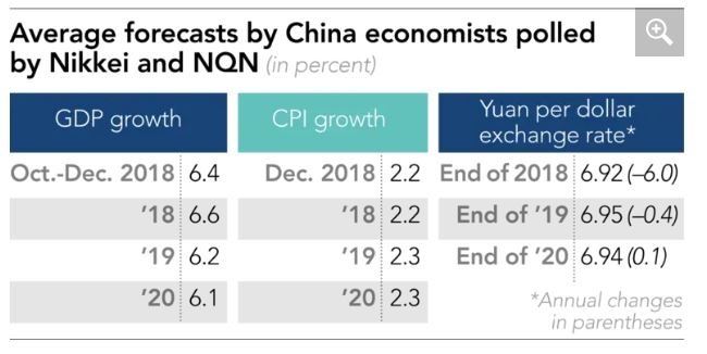 경제전문가들은 미중 무역전쟁이 GDP 성장률을 0.6~0.8% 포인트 삭감할 것으로 예상하면서 중국 정부가 인프라 투자와 감세조치 등 경기부양 조치를 취하더라도 경기둔화는 피할 수 없을 것이라고 예상했다. 미중 무역전쟁은 소매 판매 성장률이 15년 사이에 가장 낮게 나오도록 하는 등 중국 경제에 영향을 미치고 있다고 니혼게이자이는 지적했다.