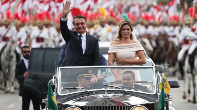 브라질의 극우파 지도자인 자일 보우소나루가 1일(현지시간) 임기 4년의 새 대통령에 취임했다. 그는 군 출신으로 28년에 걸친 7선 하원의원을 지냈으며 지난해 10월 대선결선투표에서 좌파 노동당 후보를 누르고 당선됐다.