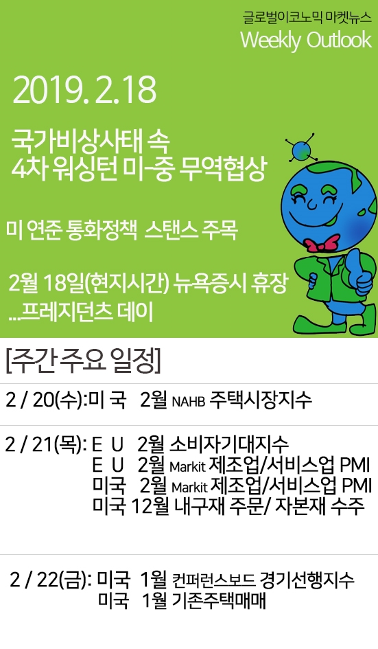 *글로벌 키워드 1) 프레지던츠 데이 미 금융시장 휴장 2) 4차 워싱턴 무역협상 3) 국가비상사태 선언 4) 미 연준 금리 인상 논쟁