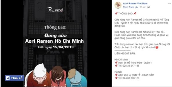승리가 창업한 일본식 아오리 라멘 식당은 한국에 43개 지점 그리고 베트남을 비롯한 해외 지점 5개 등 모두 48개 점포를 갖고 있었다. 하지만 승리가 연루된 것으로 알려진 버닝썬 사태와 성접대 의혹이 터지자 승리의 창업을 도운 투자기관 아오리 FNB는 최근 승리와의 관계를 끊겠다고 밝혔다.