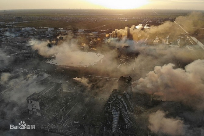 이미지 확대보기지난 3월 21일 장쑤성 옌청시에서 일어난 폭발사고는 600여명의 부상자와 78명에 달하는 사망자를 남겼으며, 인근 주택에도 심각한 피해를 입혔다. 게다가 식수를 확보하기 위해 당국이 강을 막으면서 수질오염을 더욱 악화시키는 사태를 빚었다.