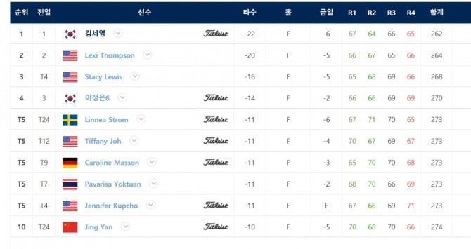 4라운드를 마친 현재 상황에서 김세영이 우승을 차지했다.