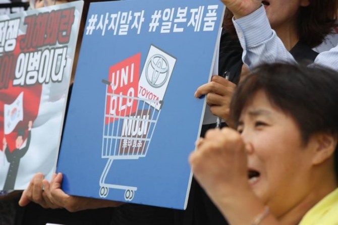 일본 정부의 반도체 소재의 대한 수출규제 강화에 따라 한국에서 일본제품의 불매운동이 계속되고 있다고 현지 매체 니혼게이자이(日本經濟)가 보도했다. 이 신문은 "일부 점포에서는 일본산 맥주 등이 철거되거나 매출액이 감소하여 광고와 발표회를 취소하는 일본 기업이 속출하고 있다. 일본 여행을 취소하는 한국인이 증가하여 운항 휴게에 나선 항공사도 수출 규제 영향이 일본 경제에 영향을 미치고 있다"고 전했다.