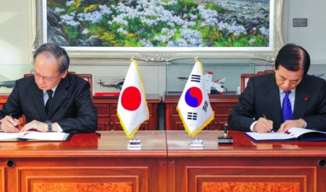 이명박 정부 때 도 체결 직전까지 갔으나 일본과의 군사협력에 대한 한국 내 반대 여론 때문에 무산됏따.