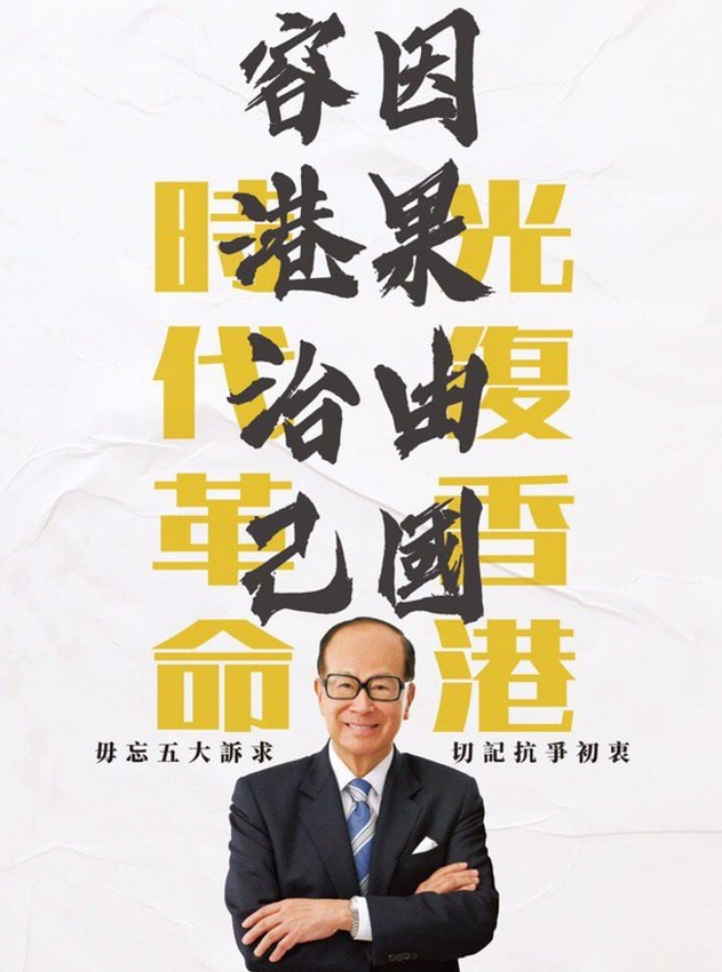 홍콩에서는 ‘범죄인 인도’ 조례의 개정안을 둘러싸고 6월부터 시위대와 경찰이 충돌하고 있으며, 사태를 진압하기위해 중국 인민무장경찰부대(무경)와 인민해방군의 투입도 거론되고 있다. 그런 시점에 리카싱의 전면광고는 그의 우국과 애국의 정을 내세우려 한 것으로 보이지만 한 지인은 “리카싱이 최근 중국정부와 거리를 두고 민주파와 통하는 것”이라는 분석도 나오고 있으며 “이 전면광고는 중국의 압력을 가하기 위한 것” 이라고 해석했다.