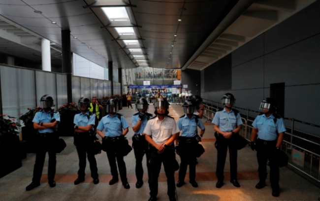 이날 오전부터 검은 옷을 입은 젊은이들이 버스 등에 타고 차례로 공항에 집결했다. 오후 2시(한국시간 3시) 경 터미널로 이어지는 복수의 진입로에 수동카트 등으로 바리케이드를 치면서 “홍콩에 자유를”등의 구호를 제각기 외쳤다.