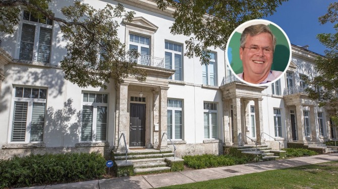 마이애미 시내 남서쪽의 코럴 게이블즈(Coral Gables) 시에 있는 젭 부시의 타운하우스는 2007년 완공된 것으로 3485평방피트(약 98평)의 오크 바닥, 충격 흡수 창 및 흰색 대리석의 고급 마감재로 꾸며져 있다.