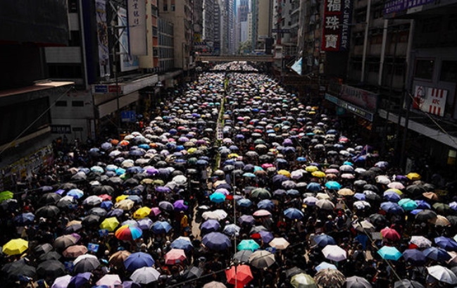 데모의 기점은 홍콩 유수의 번화가이지만 주변의 백화점이나 상점은 오후부터 점포 문을 닫고 혼란에 대비했다. 시위대는 부근의 도로를 점거하고 인터넷을 통해서 퍼진 시위의 주제가 ‘홍콩에 영광이 있기를’이란 노래와 구호를 외치며 행진했다. 그중 일부는 중국정부에 대한 압력을 요구하는 미 성조기를 든 일단도 있었다.