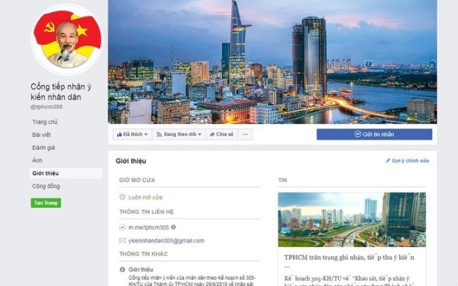 1일(현지시간) 베트남 현지매체에 따르면 호찌민 시는 '국가를 위하여 전국을 선도하는 창의적인 호찌민 시 구축에 기여하는 국민의견 조사 및 수렴'에 대한 호찌민 시 인민위원회의 305호 계획에 따라 개설된 페이스북 페이지를 통해 적극적인 피드백과 의견들을 듣고 있다고 보도했다.