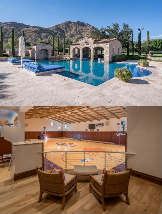 노스 유카(North Yucca)로에 위치한 이 부동산의 본관에는 천장과 마감재, 목공예품을 전시하는 사무실과 미용실, 개인 스파, 개인 운동실, 주방장이 딸린 주방과 바 등을 갖추고 있다. 특gl 프로농구 구단주 저택답게 실내 농구코트가 집 안에 설치됐다.