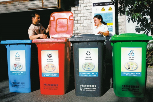 이 규정에 따르면 생활쓰레기는 음식물쓰레기(厨余垃圾), 재활용품, 유해쓰레기, 기타쓰레기 등 4가지로 분류된다.