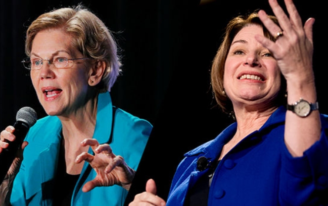 이미지 확대보기미국의 유력지 뉴욕타임스는 19일(현지시간) 올 가을에 치러지는 대통령선거 민주당경선에서 지지하는 후보로 엘리자베스 워런 상원의원(70)와 에이미 크로브셔 상원의원(59) 등 두 여성을 선택했다. 복수의 후보를 지지하는 것은 이례적이지만 당을 양분하는 좌파와 온건파 각각의 ‘선구자’라고 평가했다. 두 사람은 여론조사 지지율이 3위와 7위로 향후 경선에 영향을 줄 수도 있다.