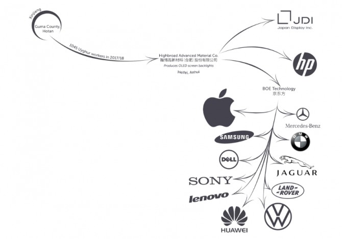 보고서에 따르면 위구르족이 강제 동원돼 일하는 곳에서 생산된 부품 등은 나이키, 애플, 폭스바겐을 비롯해 83개 글로벌 기업에 납품되고 있다.