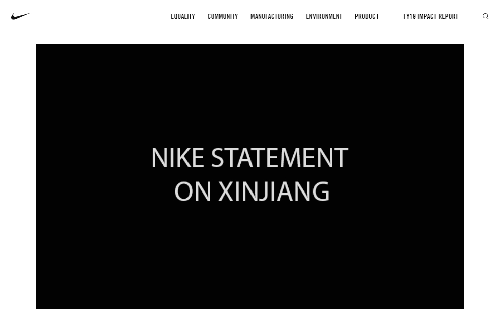 이 성명에서 나이키는 "우리는 윤리적이면서도 책임감 있는 생산 활동을 지향하는 기업"이라면서 "우리가 직접 신장 위구르에서 제품을 직접 공급받는 일은 없지만 중국내 협력업체를 통해 이뤄지는 위구르인의 고용과 관련한 잠재적인 리스크에 항상 유념해왔다"며 이같이 발표했다.
