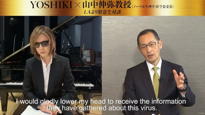 야마나카 교수는 지난 18일 일본 록 밴드 '엑스 재팬' 의 리더인 요시키의 유튜브 채널에 출연, 코로나19에 대한 인터뷰를 가졌다.