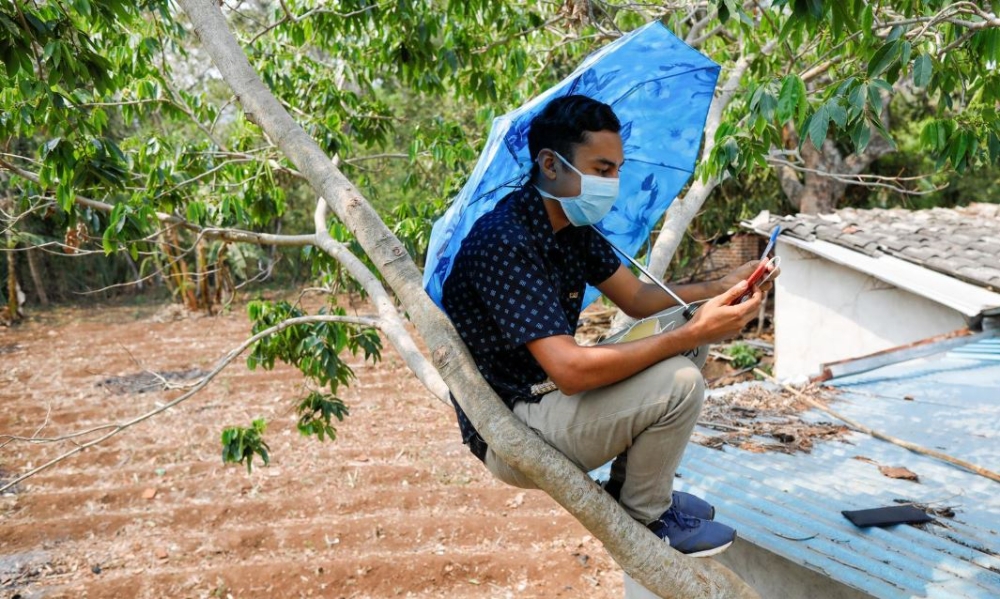이미지 확대보기신종 코로나바이러스 감염증(코로나19) 확산을 막기위해 전세계 학교가 휴교 또는 온라인 수업을 진행하고 있는 가운데 엘살바도르 학생이 와이파이 신호를 잡기 위해 나무 위에서 수업하는 장면이 포착돼 감동을 주고 있다.