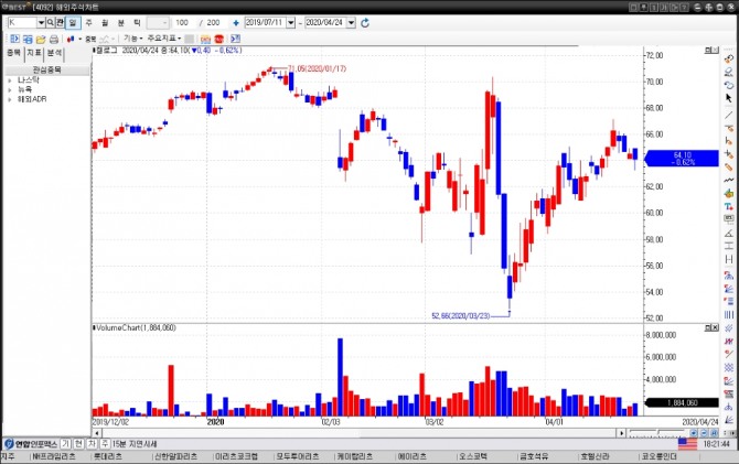 야후 파이낸스에 따르면 켈로그를 분석하는 16명의 애널리스트들은 켈로그가 2019년 1분기 1.01달러 대비 주당 순이익이 0.95달러로 소폭 악화될 것으로 예상하고 있다.
