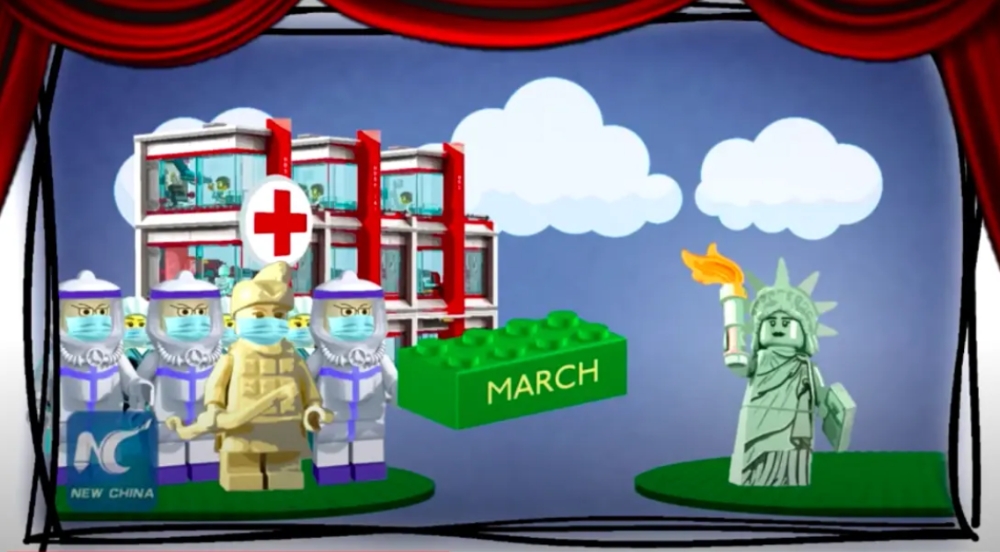 이 동영상은 중국 관영신화통신이 제작해 지난달 29일부터 인터넷에 유통하기 시작한 ‘Once Upon a Virus(바이러스 시절에)’란 제목의 선전물로 가장 먼저 코로나19 사태를 겪어야 했던 중국이 미국에서 코로나19 사태가 터지기 3개월 전부터 경고를 했음에도 말을 듣지 않아 오늘날의 상황에 처했음을 시사하는 내용이 골자다.