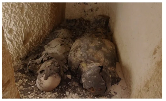 엑스레이 판독 결과 미라 두 구는 남성과 여성으로 나타났다. 그들은 파라오의 권력을 유지하는 데 핵심적인 역할을 한 사제였다는 주장이다. 미라 한 구는 재탄생을 상징하며 금박으로 그려진 스카랩의 이미지를 가지고 있다.