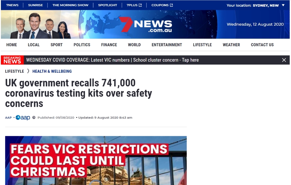 7NEWS 측은 “(이번) 진단키트 리콜은 코로나19와 관련된 일련의 사고들 가운데 모호한 거래 중 하나이다”라고 지적했다.