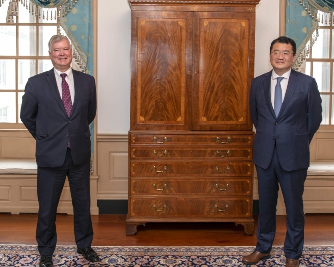 이미지 확대보기최종건 외교부 제1차관이 지난 10일(현지 시간) 미국 워싱턴에서 스티븐 비건 미국무부 부장관과 한미 외교차관 회담을 갖고 한미관계 전반 및 한반도 문제, 지역 정세 등 다양한 상호 관심사에 대해 폭넓게 논의했다. 사진=뉴시스