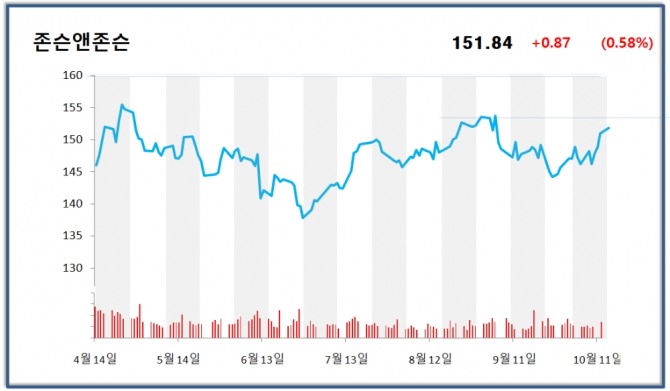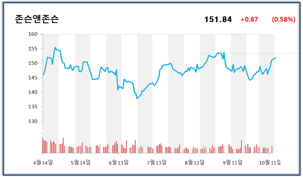존슨앤존슨의 주가는 월요일은 상승했지만 화요일 개장을 앞두고 149.55달러로 1.5% 하락해 거래중이다.
