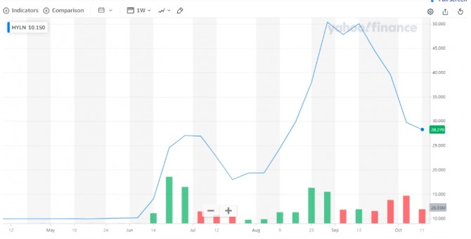 이미지 확대보기이달 초 특수목적 인수회사와의 역합병을 마친 하이리온의 주가는 3.15% 하락한 28.27달러를 기록하며 장을 마쳤다.