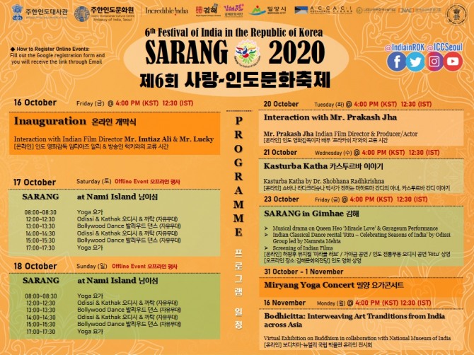 그러나 올해는 코로나 대유행으로 여행 제한과 사회적 거리두기를 감안해 오프라인 행사 대신 어플리케이션, 라이브 스트리밍, TV‧라디오 방송 등 온라인으로 진행된다. 16일 개막식에는 '우리가 만났을때 Jab We Met', '락스타 Rockstar', '하이웨이 Highway', '오늘날의 사랑 Love Aaj Kal'과 같은 블록버스터 영화로 박스오피스에서 기록을 세운 유명 인도 영화감독 임티아즈 알리(Imtiaz Ali)와의 만남이 예정돼 있다.