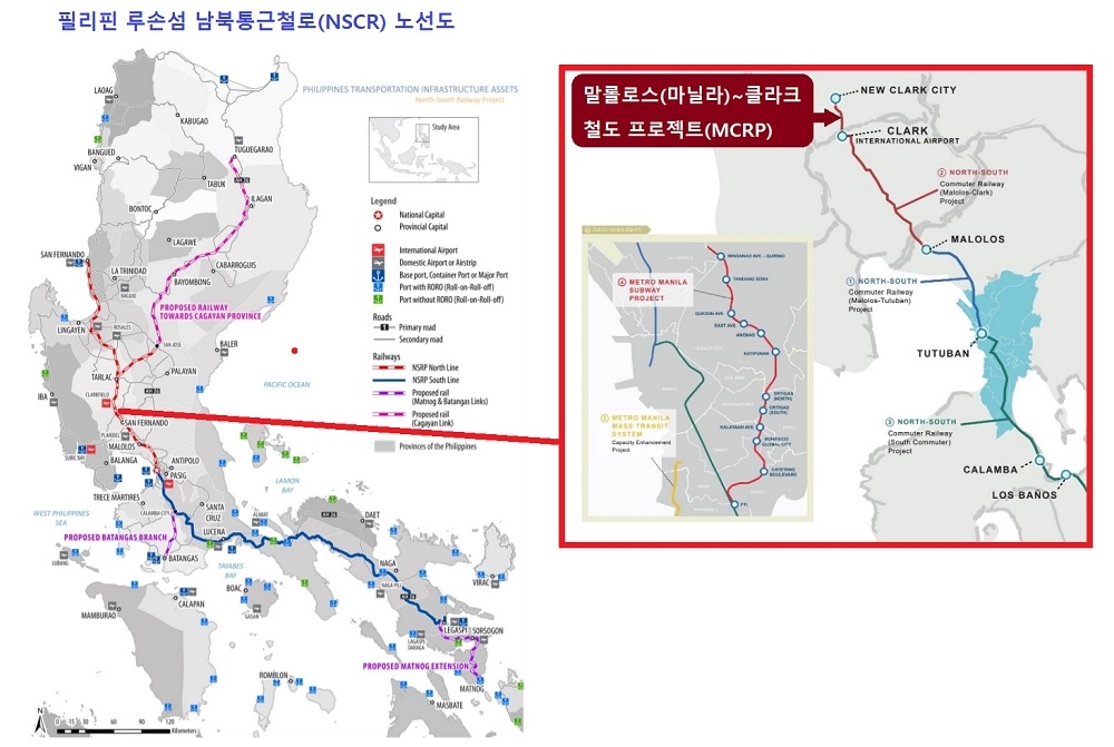 필리핀 정부는 수도 마닐라가 속한 루손(Luzon) 섬의 북부 클락에서 수도 마닐라를 거쳐 남부 칼람바까지 전체 148㎞에 이르는 남북통근철로(North-South Commuter Railway:NSCR) 프로젝트 사업을 진행하고 있다. NSCR은 루손 지역의 26개 도시와 지방자치단체 등 총 37개 역을 거치게 된다.