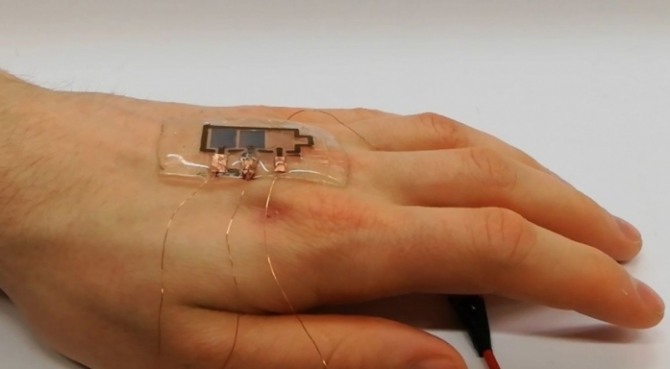 디스플레이는 잉크젯 프린터로 제작할 수 있다. 그리고 젤라틴을 입힌다. 이렇게 하면 신축성이 있어 몸에 착용할 수 있다. 접착력이 있다.