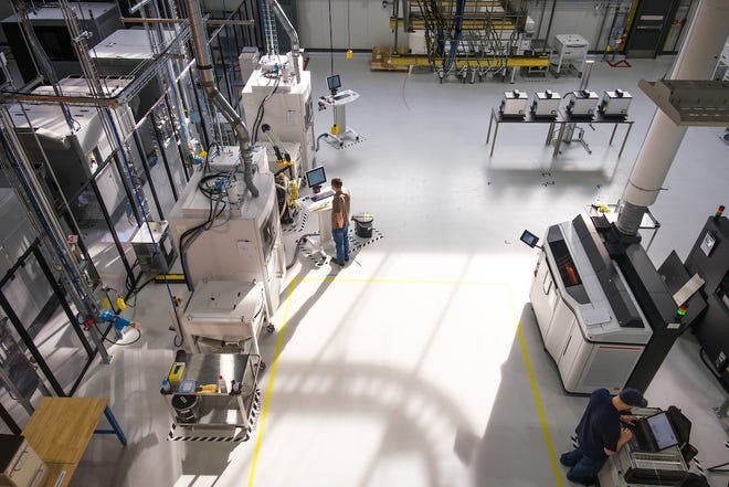 이미지 확대보기14일(이하 현지시간) 씨넷 등 외신에 따르면 3D프린팅 기술을 적용하는 ‘적층가공산업센터(AIC)’를 미시건주 워렌에 있는 변속기 공장에 1393평방미터 규모로 설치하고 이날부터 가동에 들어갔다.